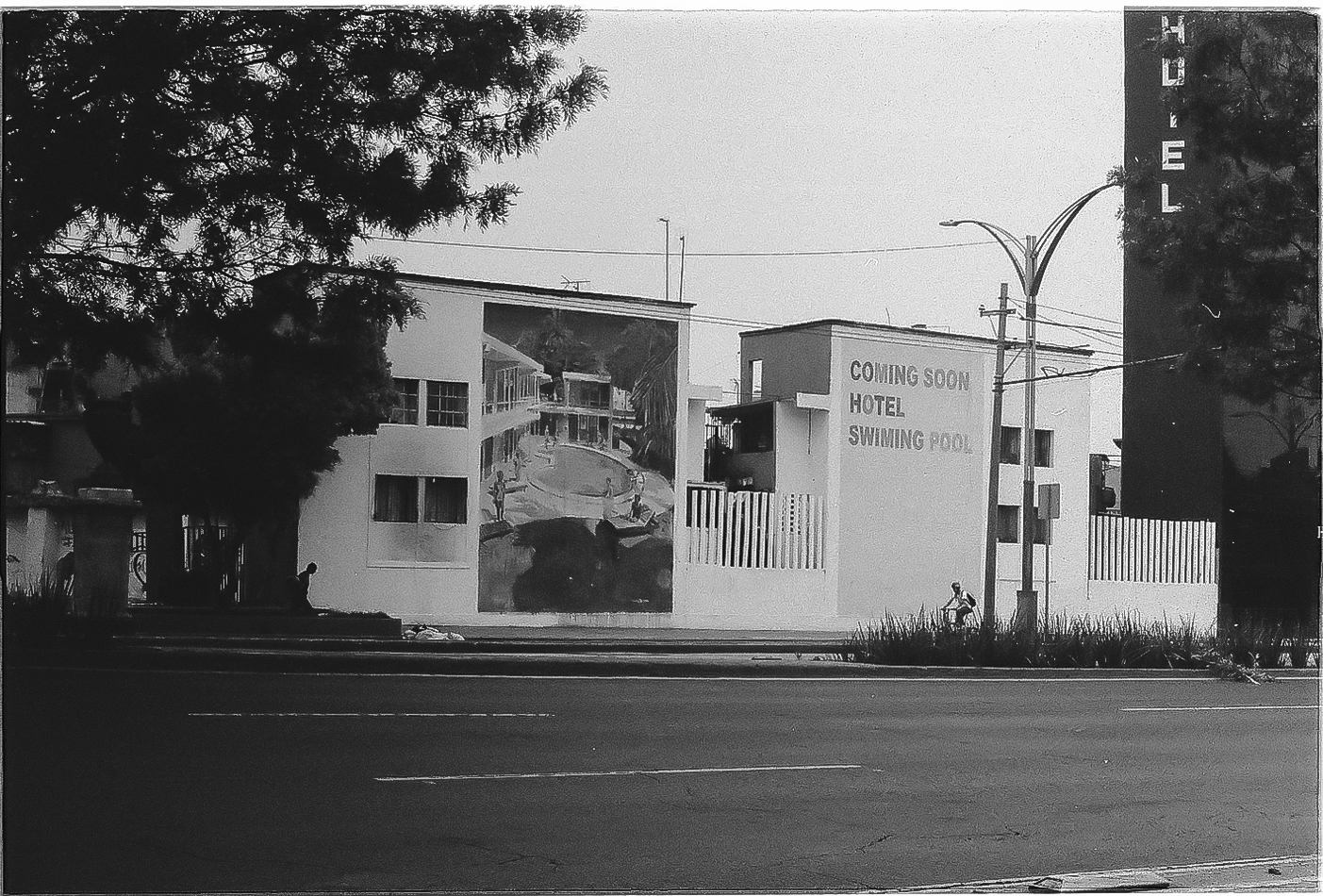 The facade of the unfinished hotel heightens the contrast between the promised pool, represented in the mural, and the neighborhood’s real pool, which is the flooded terrain filled with waste.